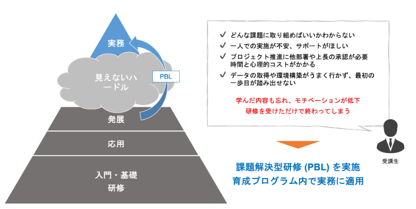 ですので、学習を始める段階で現場の課題を洗い出し、しっかりと実課題が解決できる座組を取ることが非常に重要となってきます。