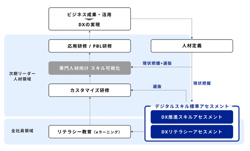 上記の人材選抜のように、リテラシー研修後に DX 推進スキルアセスメントを行うことで、リテラシー研修の効果測定が可能となります。