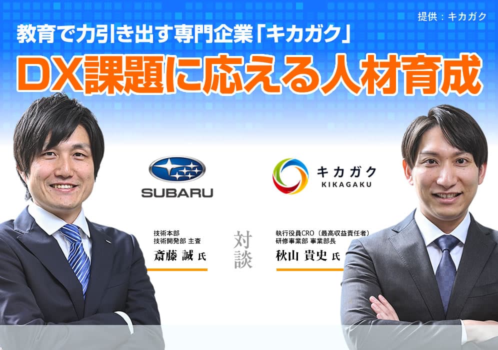 幅広い産業でデジタルトランスフォーメーション(DX)が加速する中、DXを推進できる人材の育成に多くの企業が試行錯誤を続けている。そんな中で注目を集めているのが、大手上場企業を中心に「教育」を軸としたDX支援を展開しているキカガク(東京・渋谷)だ。キカガクの研修サービスを活用してDX人材育成に取り組むSUBARUの担当者は「講師の質が非常に高く、期待以上の成果が出ている」と高く評価する。