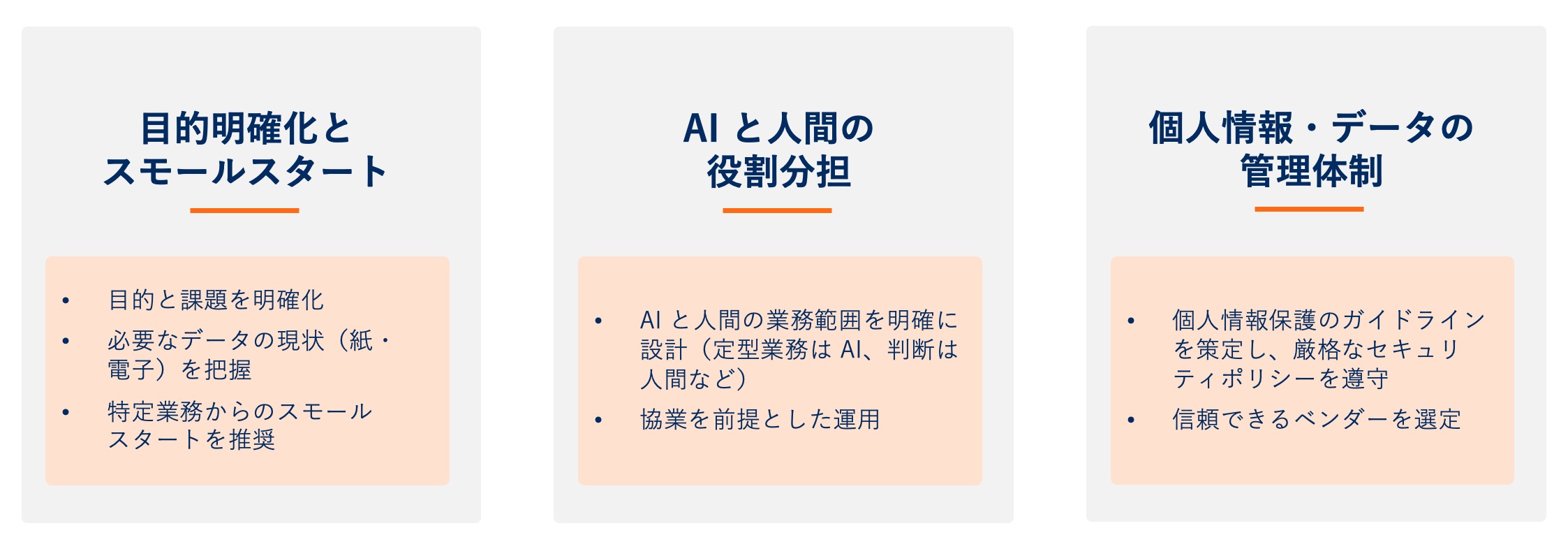 AI エージェントは非常に強力なツールですが、その導入を成功させるためには、いくつかの重要なポイントを押さえておく必要があります。