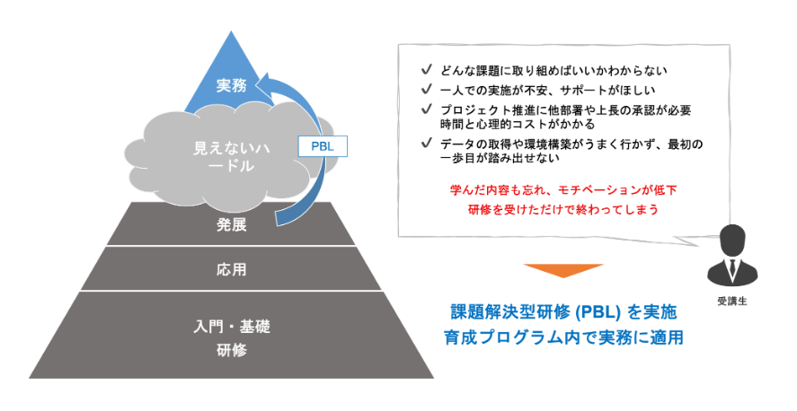 ですので、学習を始める段階で現場の課題を洗い出し、しっかりと実課題が解決できる座組を取ることが非常に重要となってきます。
