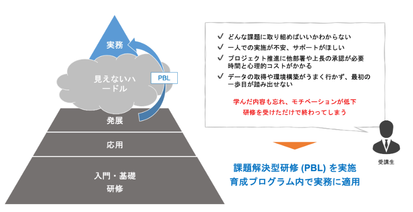 ですので、学習を始める段階で現場の課題を洗い出し、しっかりと実課題が解決できる座組を取ることが非常に重要となってきます。