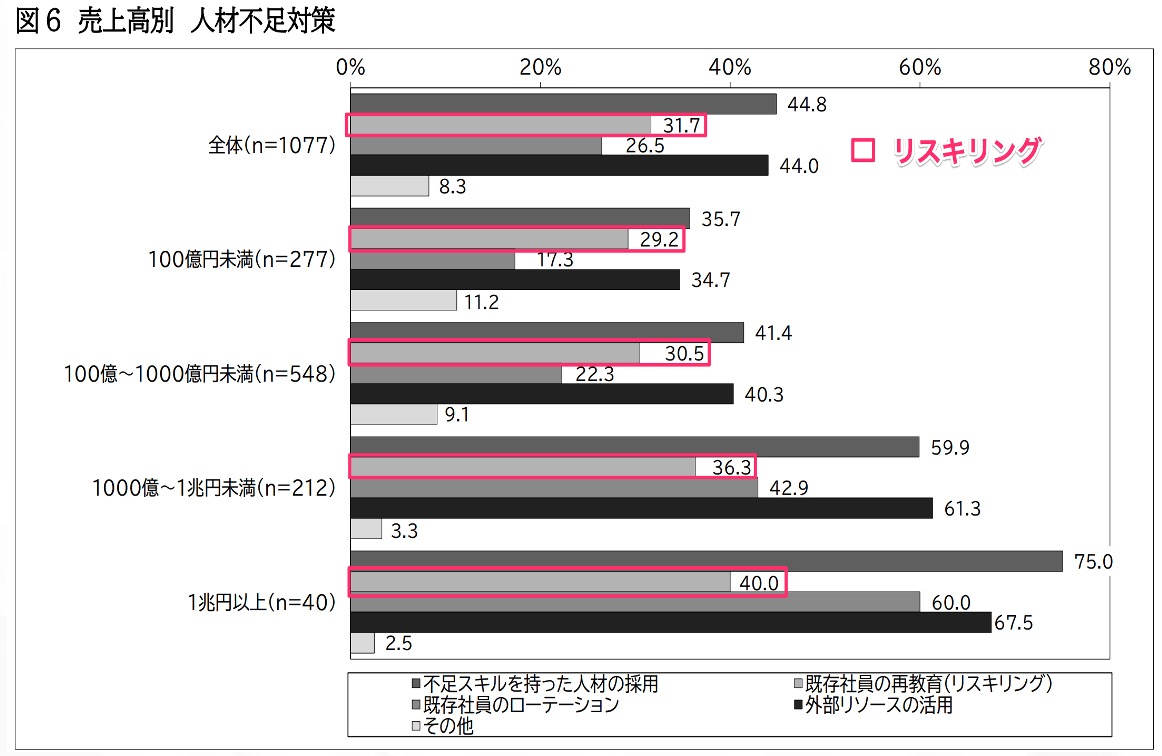 これは、今後企業にとって必要となるスキルを企業側が社員に施す再教育を指しており、「リスキリング」を進めていくことで、DX の「内製化」にも繋がってくる取り組みです。