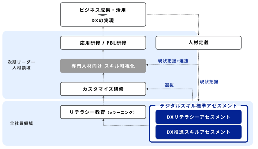 具体的には、社員のリテラシーや実務のスキルレベルを評価するアセスメントを実施することが効果的です。