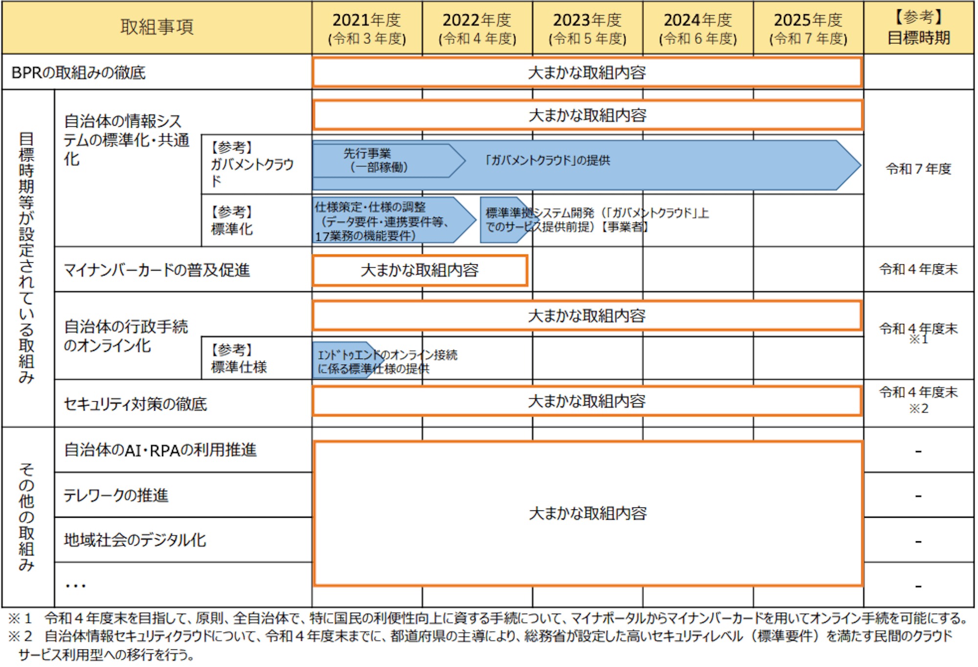 デジタル化の進捗状況を確認し、自団体の DX の取組内容、取組み順序を大まかな工程表にする |