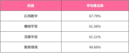JDLA 認定プログラムを修了した受験者の 3 割程度以上が不合格になることを考えると、合格率の数値以上に難易度の高い試験であると考えられます。