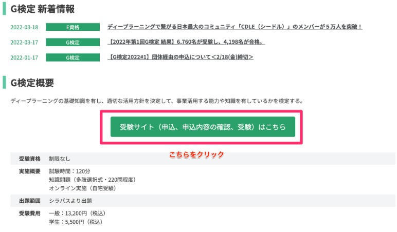 受験条件がないため、誰でも受験可能です。一方で、同じ日本ディープラーニング協会(以下、JDLA)が提供している E資格に関しては、受験条件(特定の講座の受講が必要)が必要なのでご注意ください。