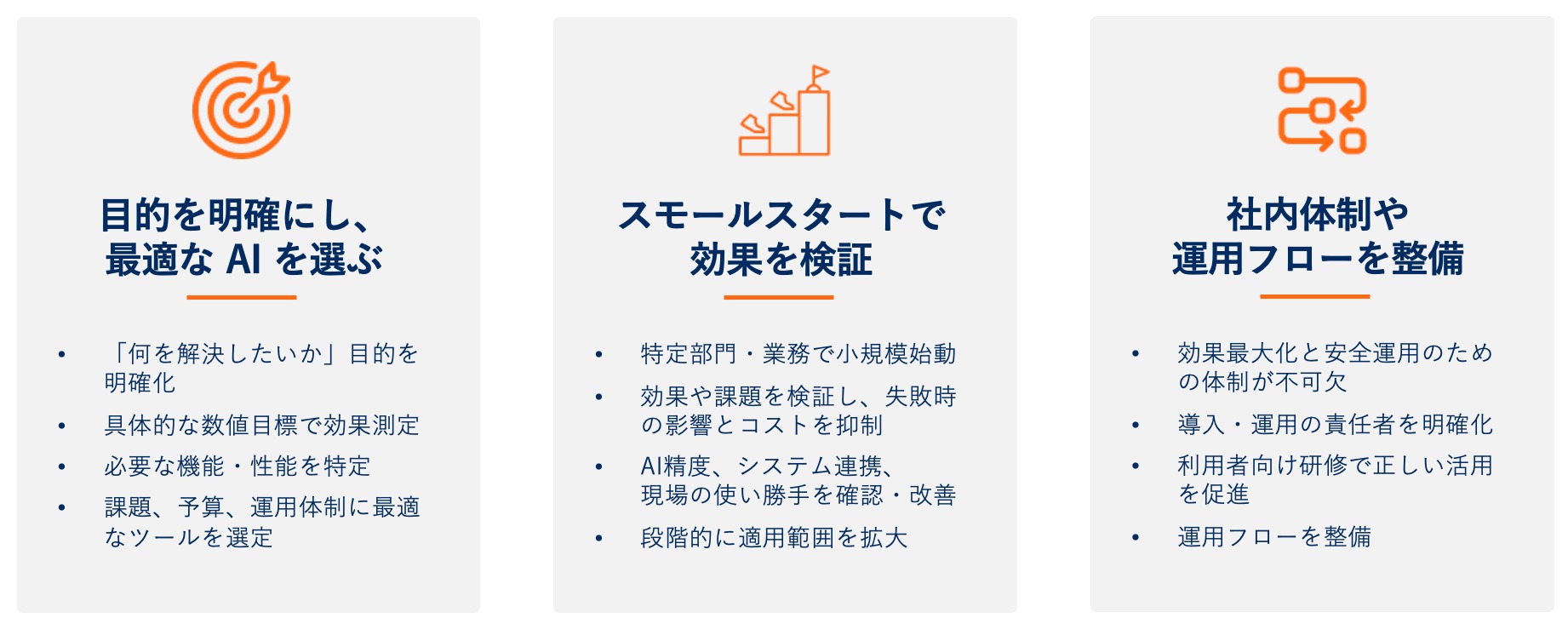 AIエージェントは強力なツールですが、導入を成功させるためには押さえておくべきポイントがあります。