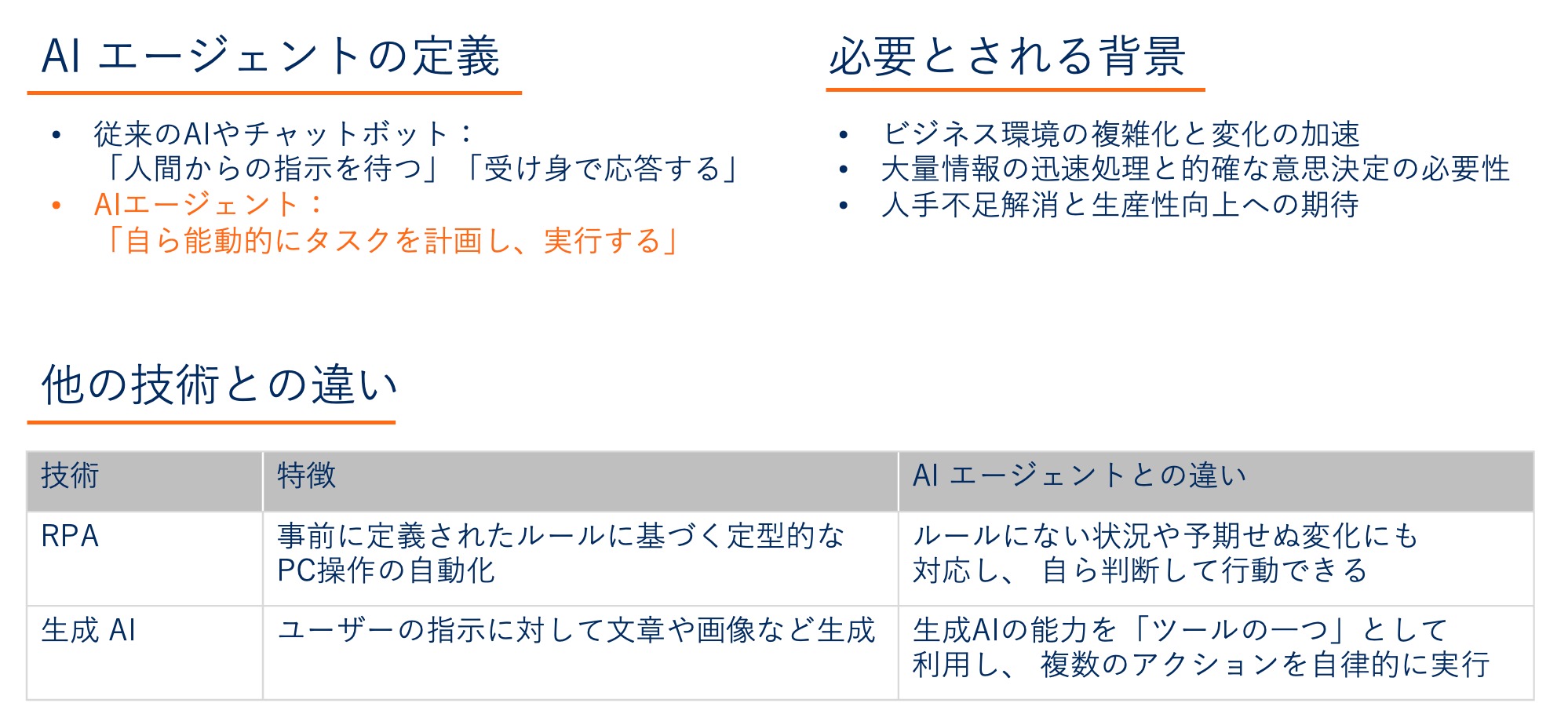 近年、AI技術は目覚ましい進化を遂げ、ビジネスのあらゆる場面でその活用が広がっています。特に「AIエージェント」は、従来のAIとは一線を画す能力を持つことから、大きな注目を集めています。