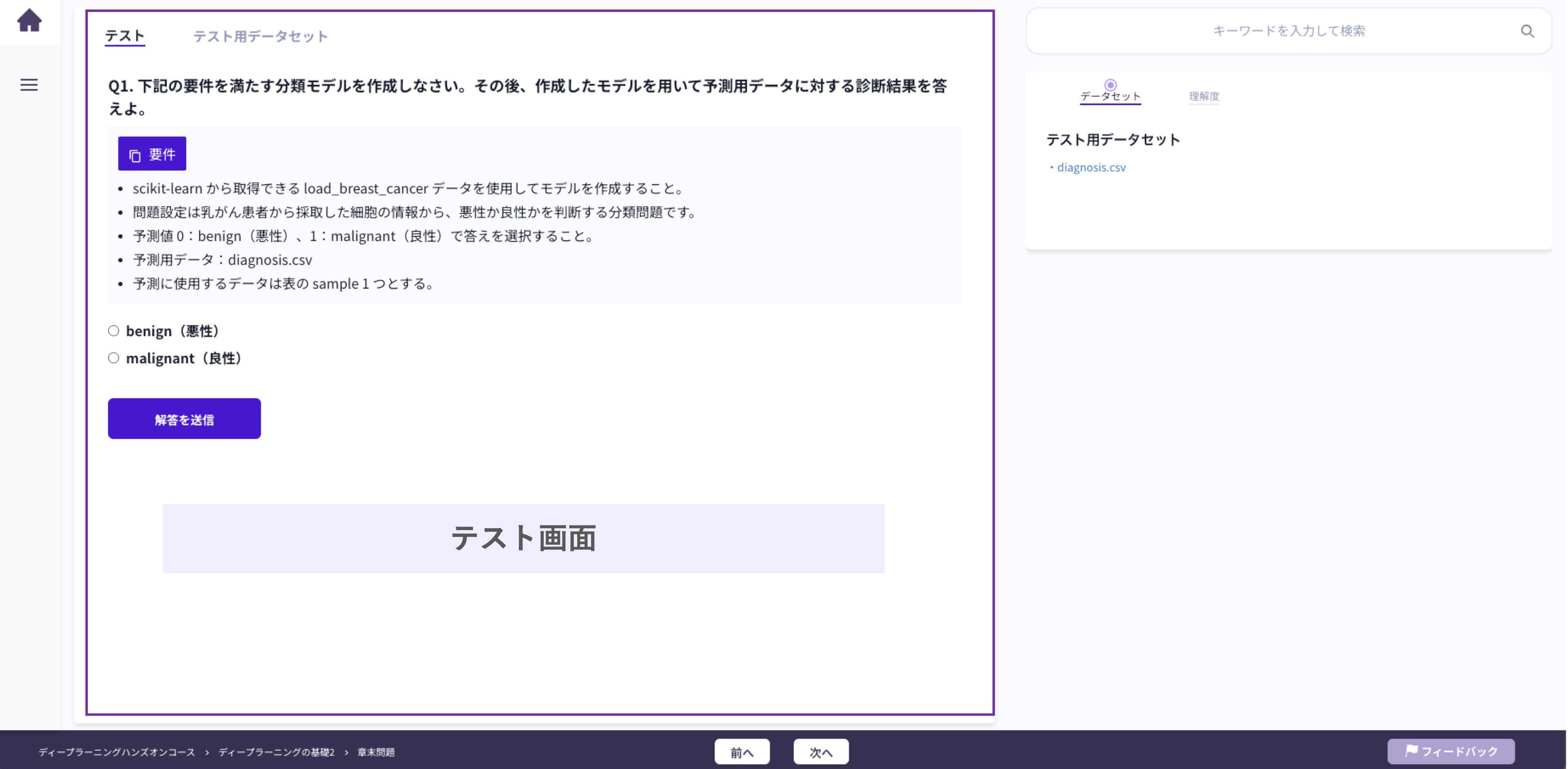 また、インプットするだけでなくアウトプットの機会としてキカガクオリジナルのテストシステムを導入しております。