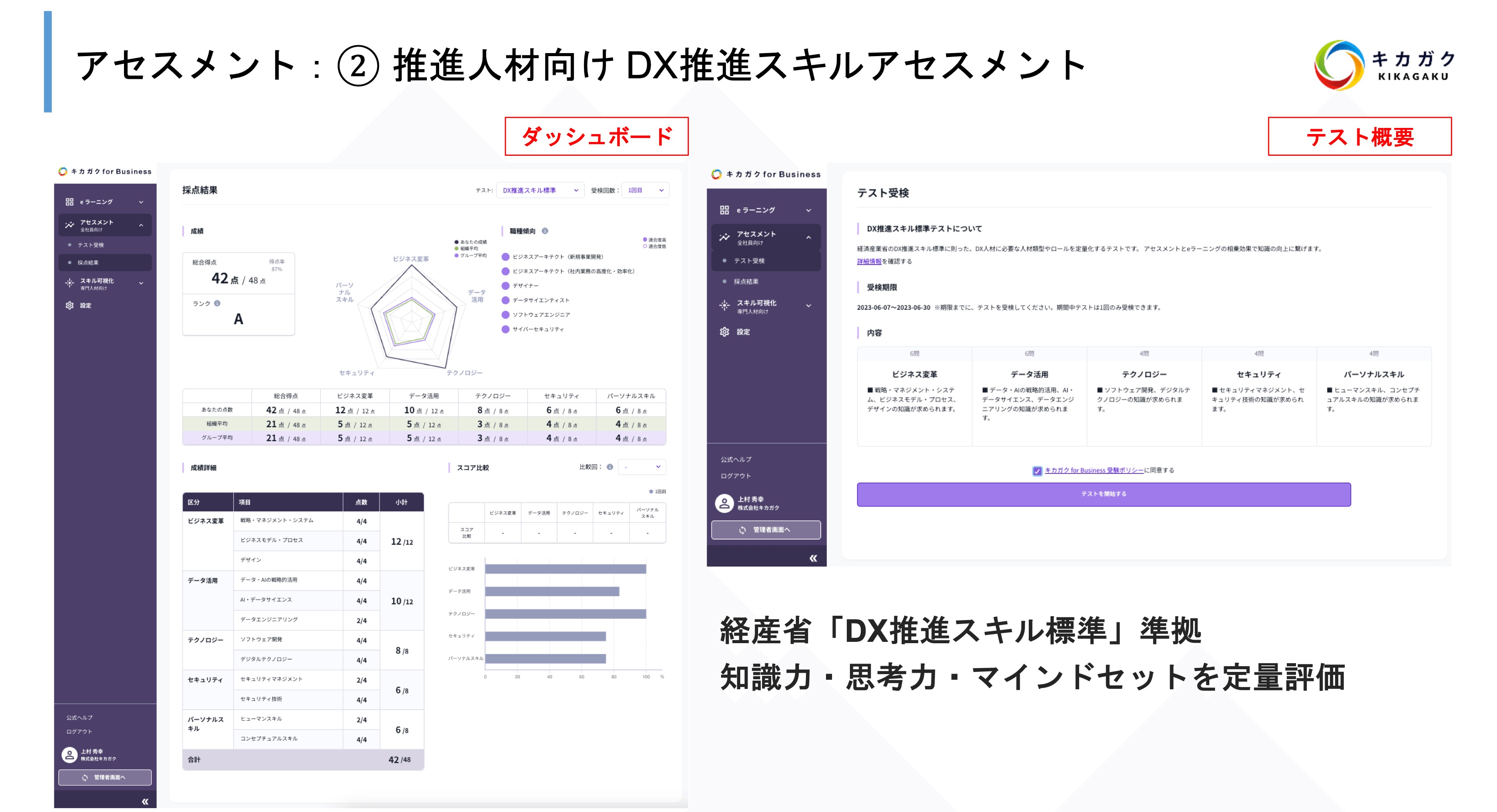 下図:DX 推進スキルアセスメントのダッシュボードとテストページのイメージ