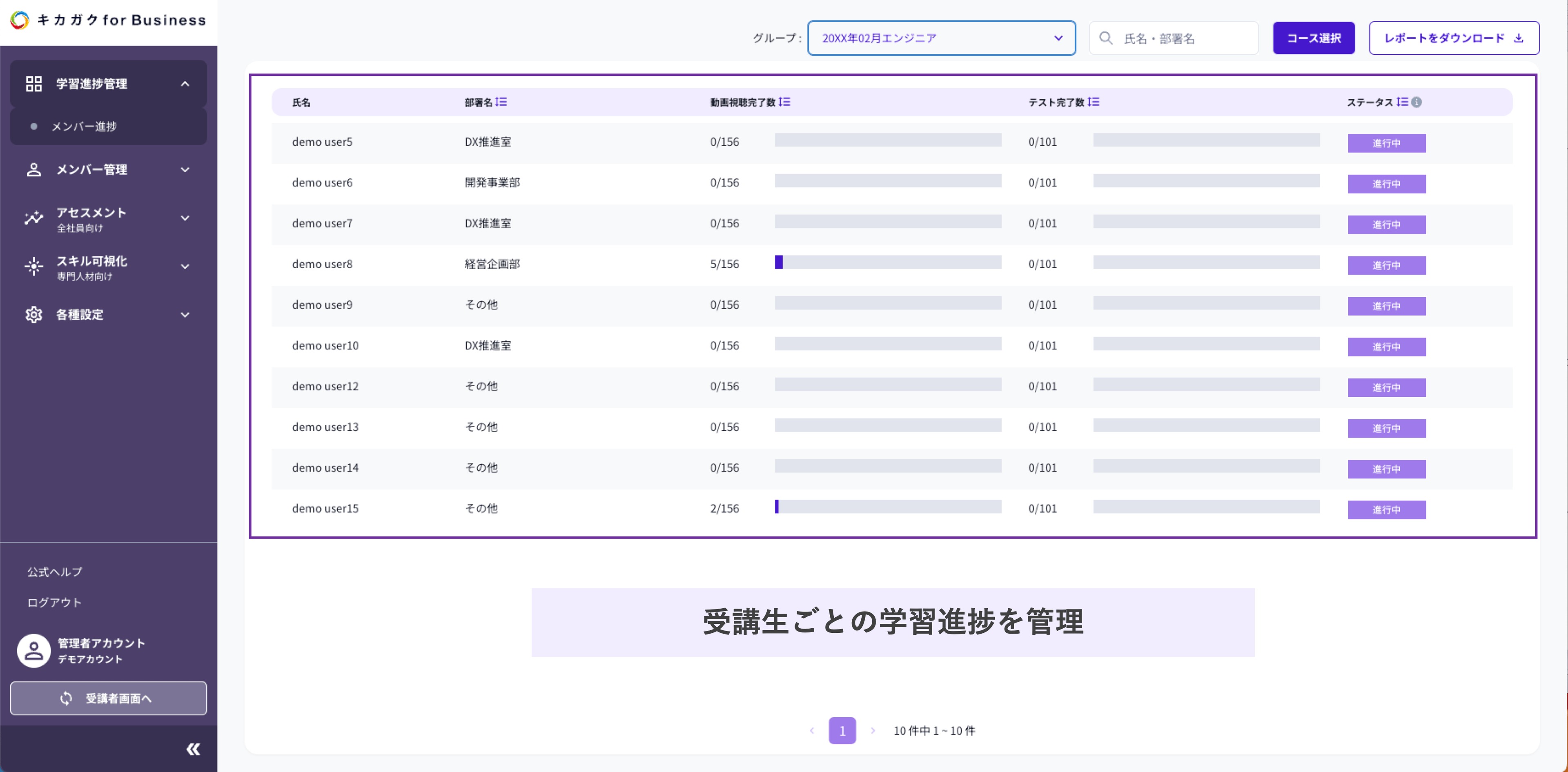 ただし、管理者にとってのキカガク for Business の魅力は学習進捗管理だけでなく、次のアセスメントにあります。