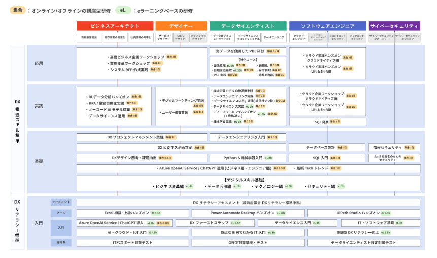 つまり DX リテラシーの基礎を構成する入門編からディープラーニングの応用系のコースまで幅広く学ぶことができます。
