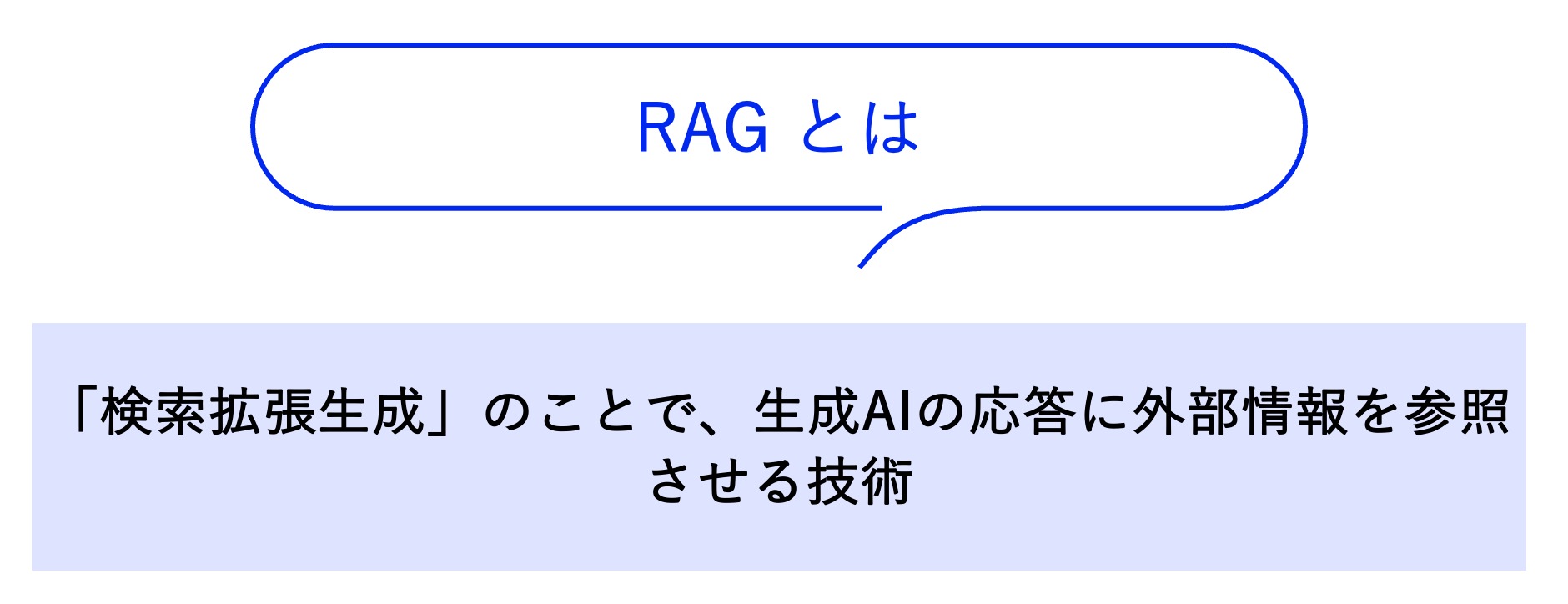 RAGとは「検索拡張生成」のことで、生成AIの応答に外部情報を参照させる技術です。
