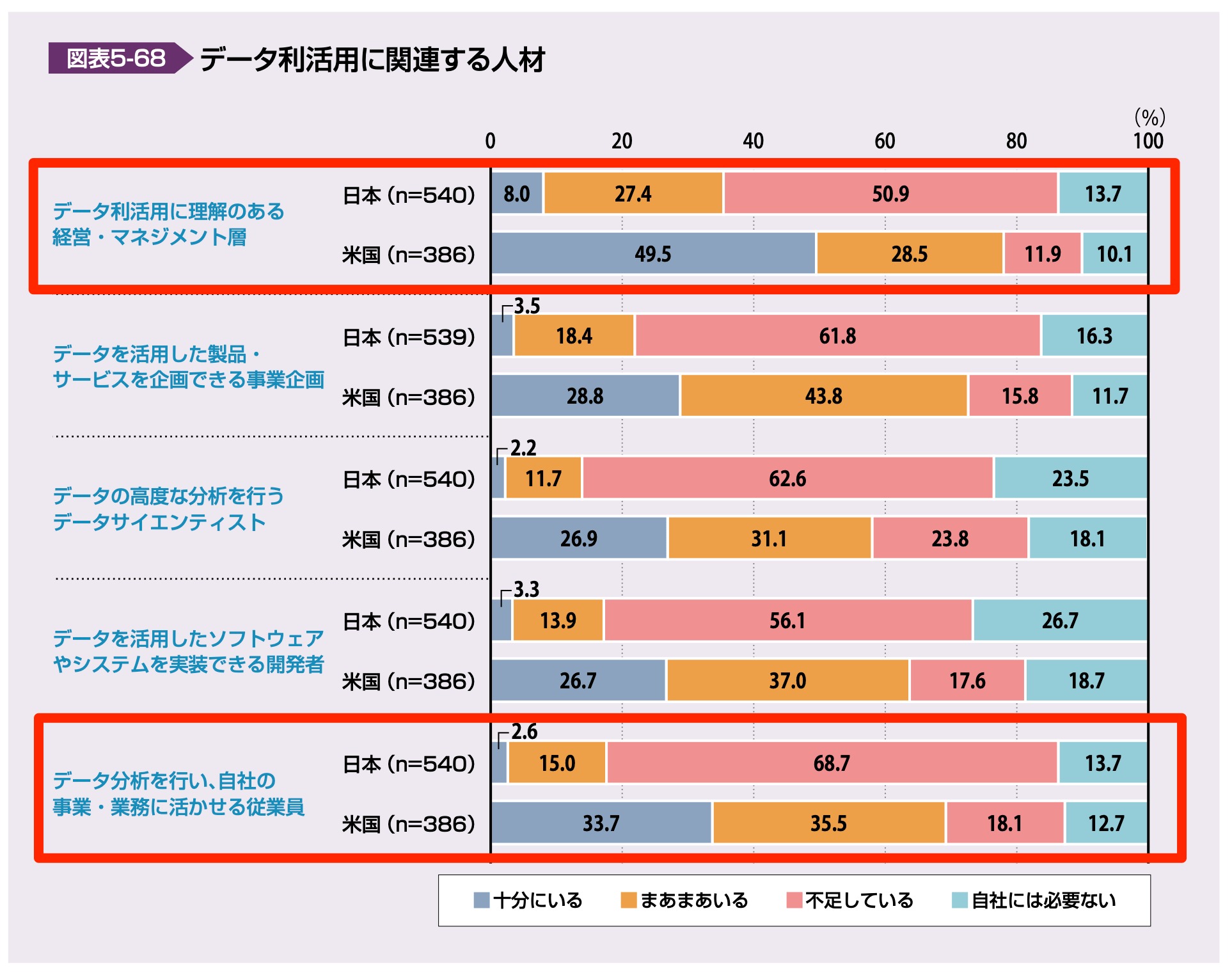 つまり、全社的にデータドリブンな組織体質に変えていくには、データサイエンティストのような推進における中核人材だけでなく、全社員的な人材育成を実施する必要もありそうです。