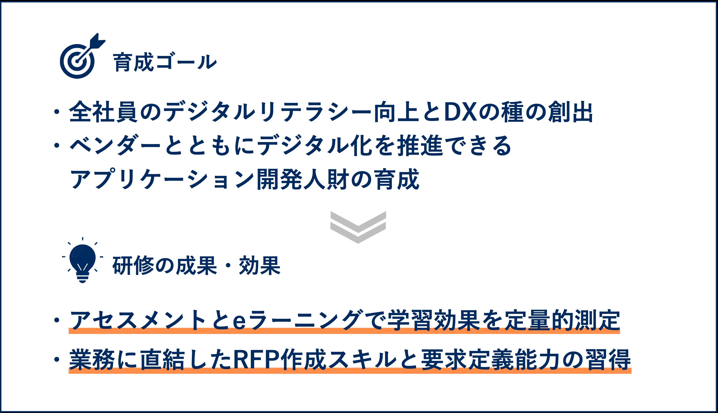 こういった我々の意図を汲んでいただき、既存の研修を柔軟にカスタマイズいただいた点は大変助かりました。