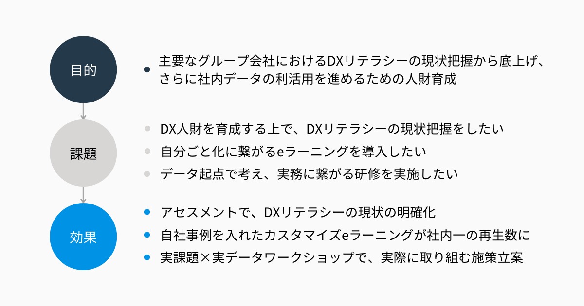 一つ目は、グループにおける DX リテラシーの現状把握ができること、そしてそれが DX リテラシー標準に準拠したアセスメントであることが大きかったです。