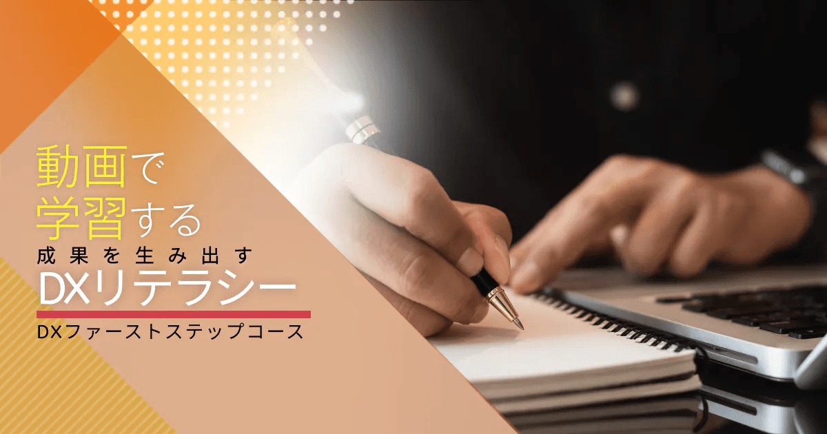 DX とは何か?なぜ必要なのかといったことを学べるコースです。 DX の基本を学び、DX 推進への第一歩を踏みだすための内容となっています。