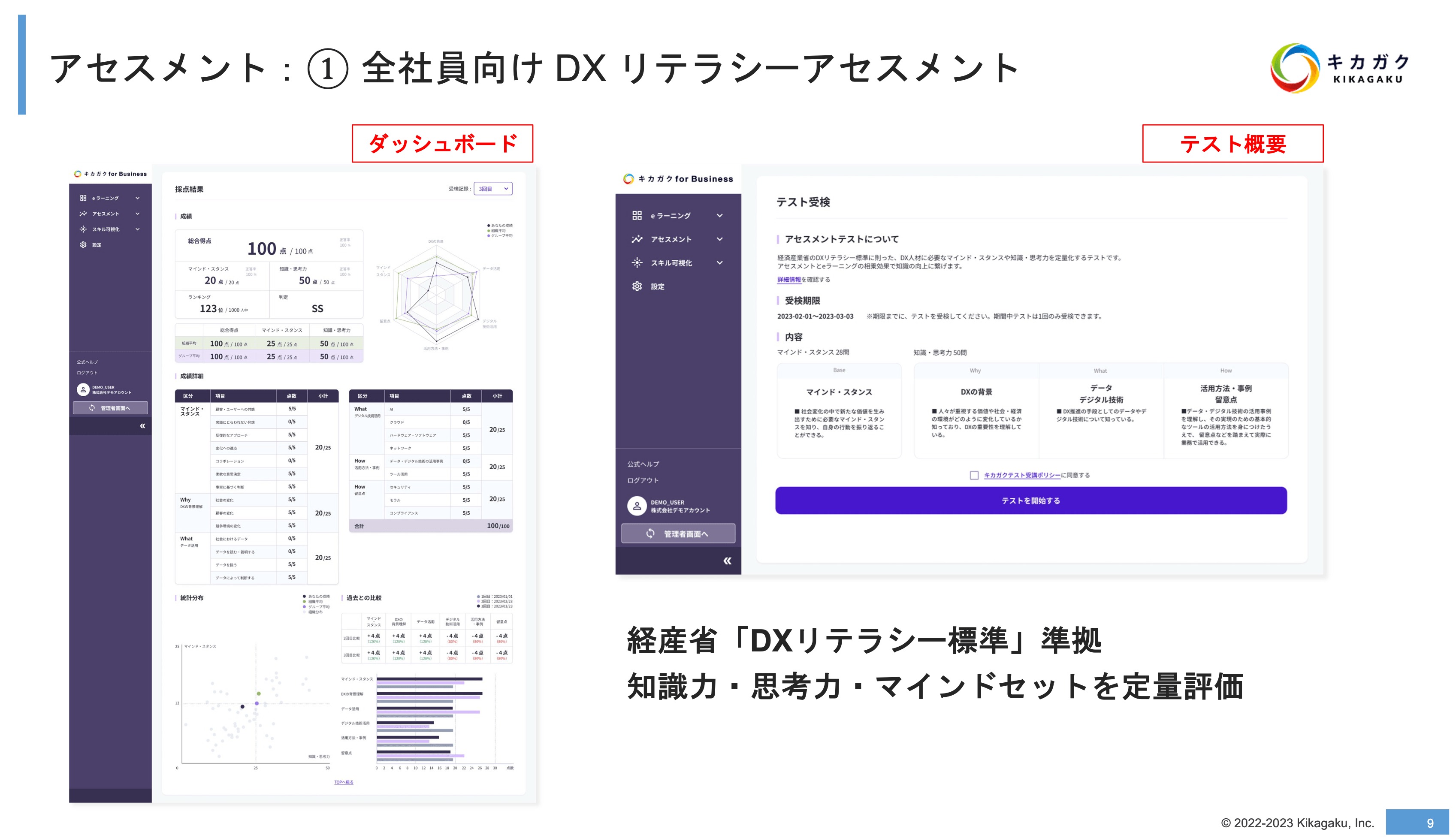 田口様:まず大前提として、DX リテラシー標準に準拠したアセスメントを探していました。