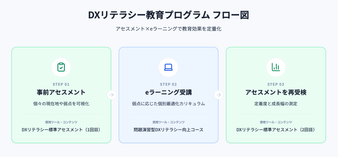 DXとはつまり「デジタル変革」であり、変革は一部の人間だけで成し遂げられるものではありません。少数の専門家だけを育成しても、周囲の理解や協力がなければ実務は変わりません。DXを推進するには、組織全体のリテラシーを底上げし、風土を醸成することが欠かせないという課題感がありました。