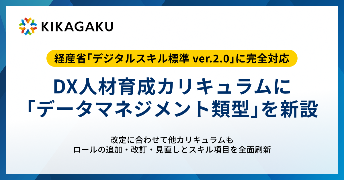 AI・データ活用人材育成事業を展開する株式会社キカガク(本社:東京都渋谷区、代表取締役社長:大崎 将寛、以下「キカガク」)は、経済産業省および独立行政法人情報処理推進機構(IPA)が2026年4月16日に改訂・公表した「デジタルスキル標準(DSS)バージョン2.0」(以下「DSS ver.2.0」)に完全対応した新カリキュラムを本日より順次提供開始いたします。