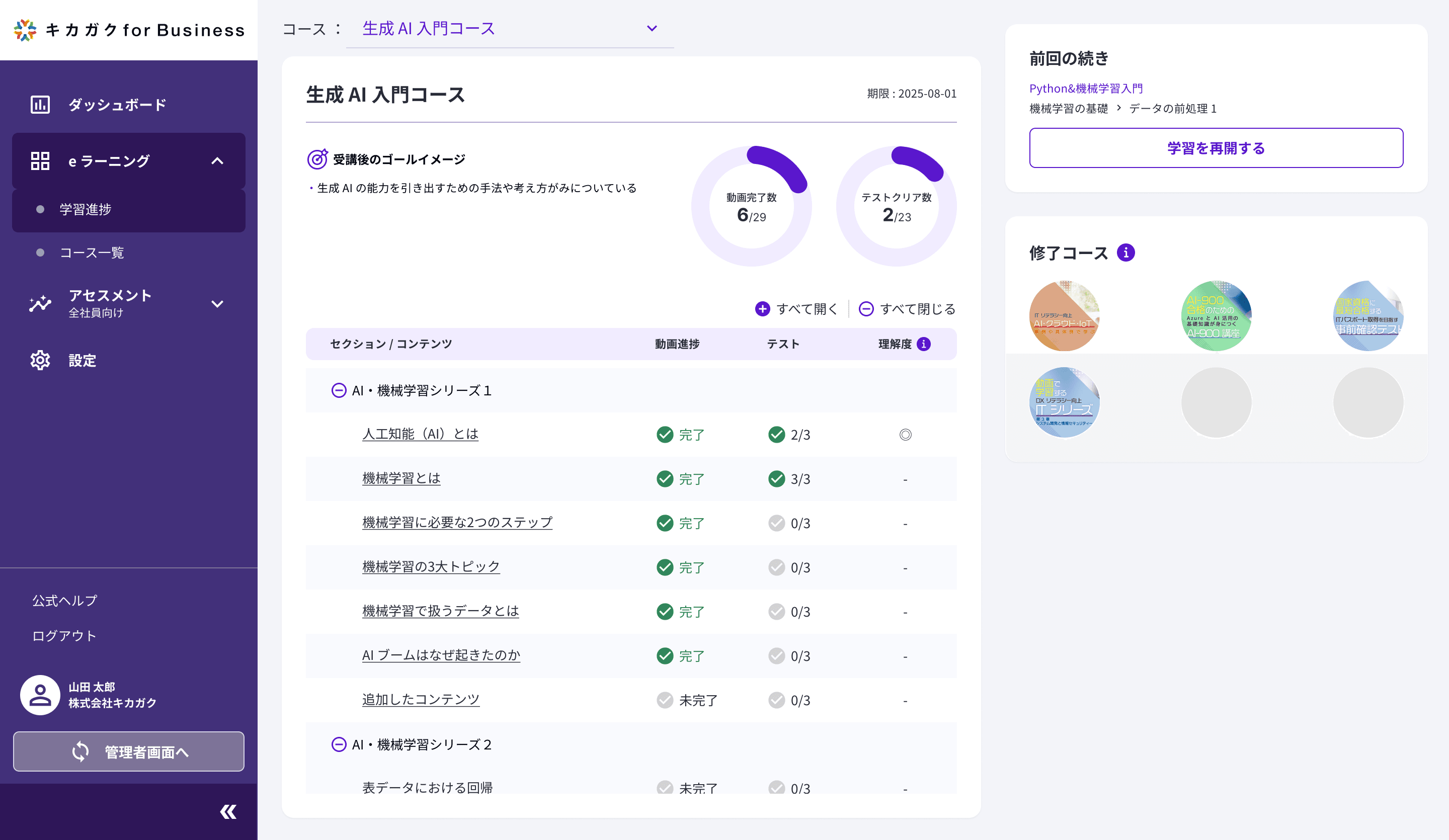 尚、サービスはキカガクが提供する DX 人材ラーニング・アセスメントプラットフォーム「キカガク for Business」上で利用できます。