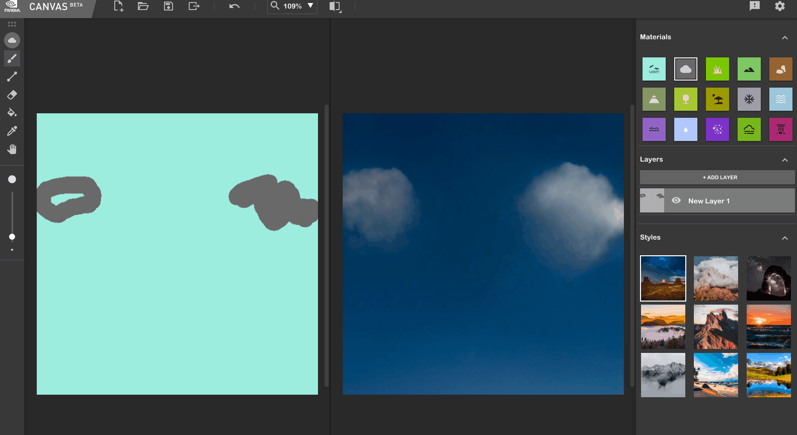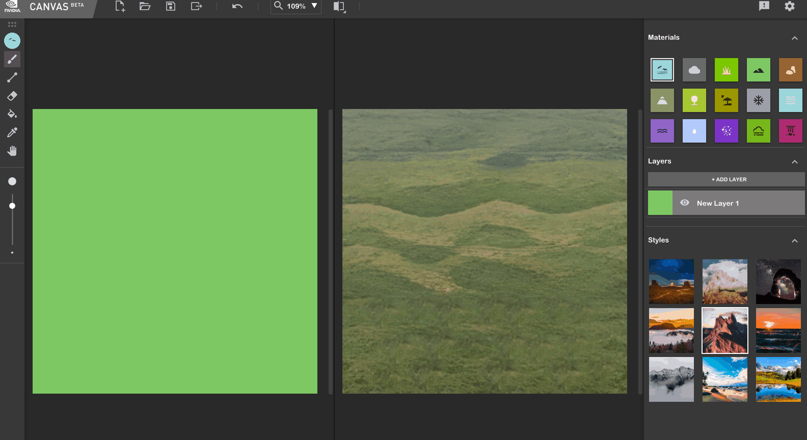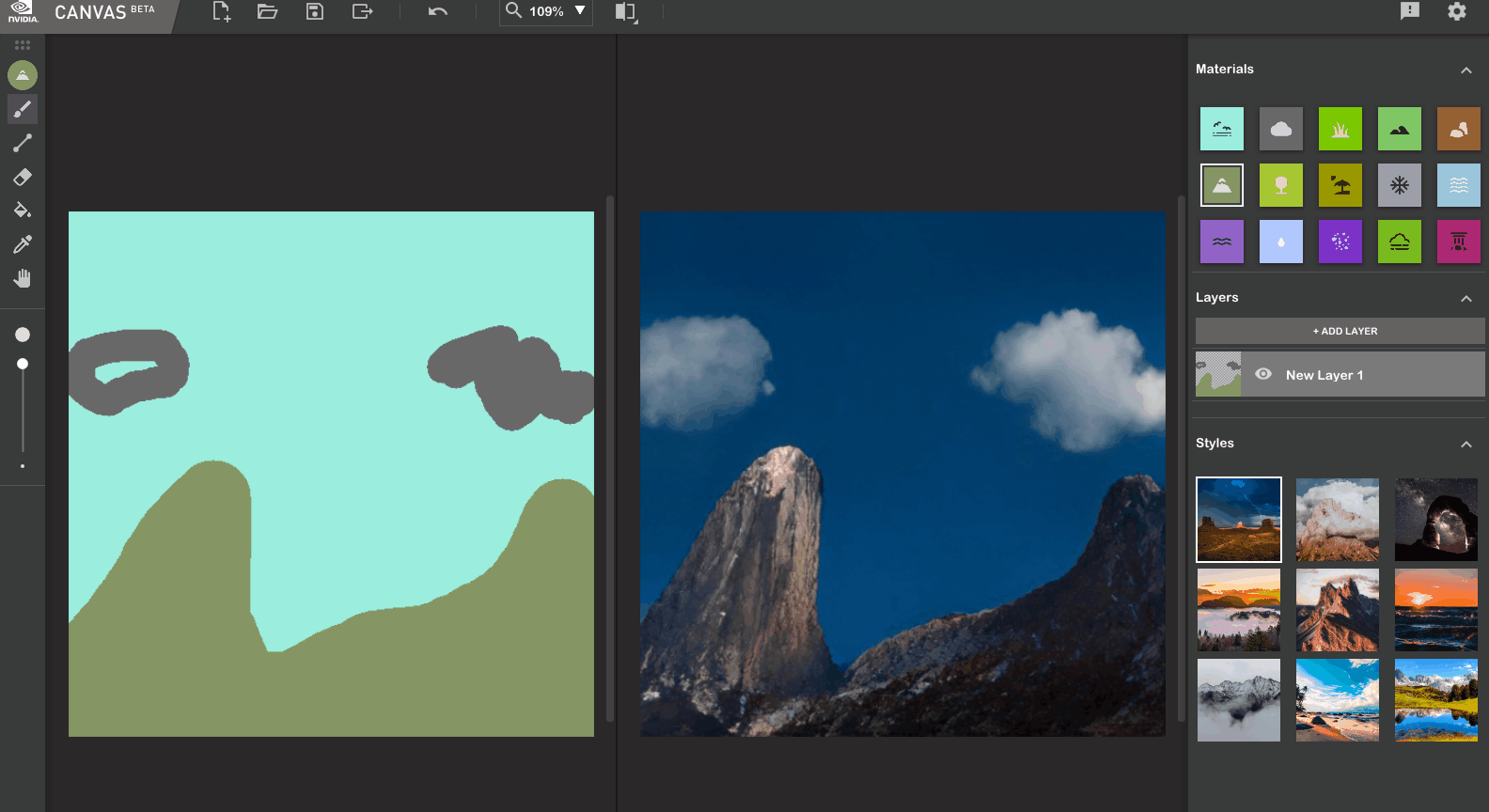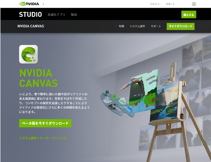 というわけで、今回は NVIDIA Research が開発した GauGAN という技術を使用している NVIDIA Canvas を使って、リアルな風景画を作成してみます!もちろん、無料です!