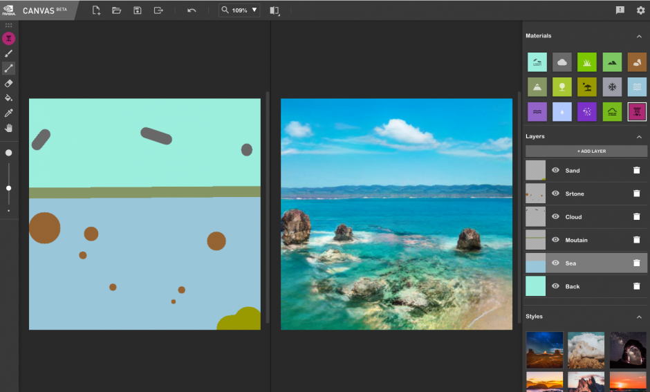 塗り絵のように描くだけで、写真のような風景画がすぐに表示されることに驚きました。GIF でも凄さが伝わりましたでしょうか?