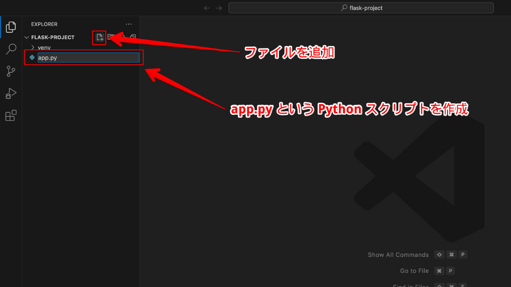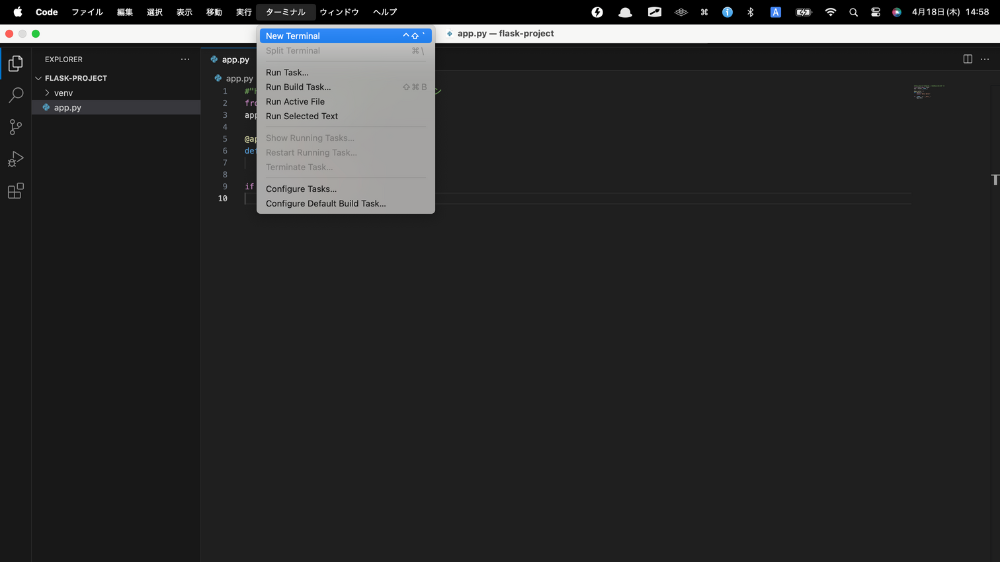 先ほど作成した flask-project を編集して、アプリケーション形式にしていいます!