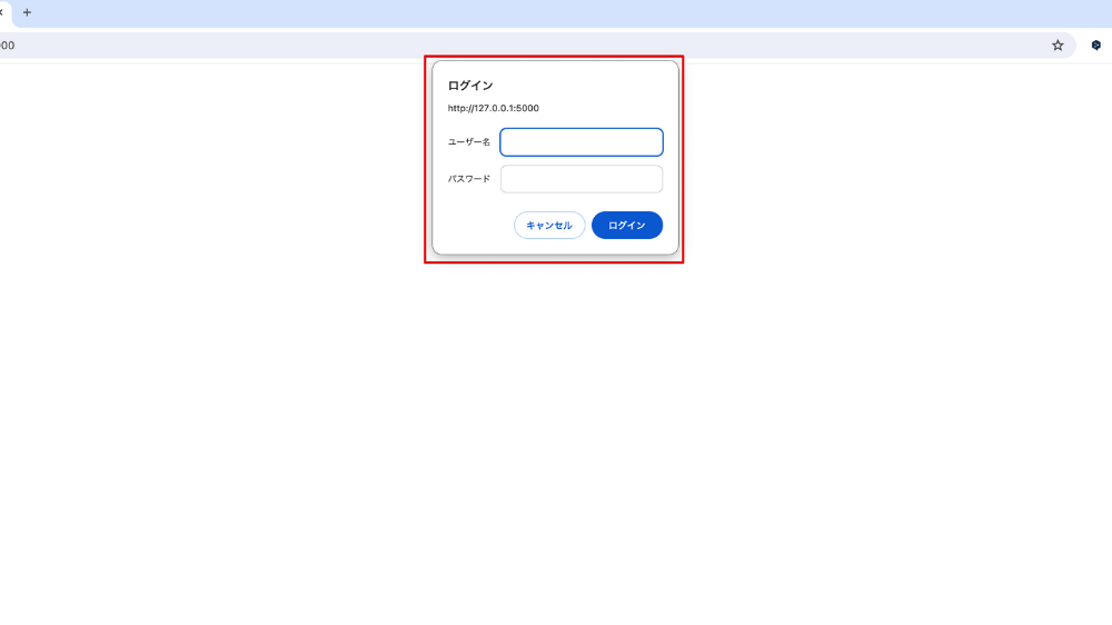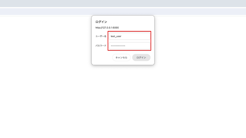 先ほど app.py で記述したユーザー名とパスワードを入力してログインをクリックします。