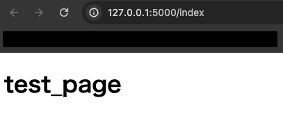 一方でこちらは、index ディレクトリに(http://127.0.0.1:5000/index) にアクセスすると、「test_page」 と表示されます。