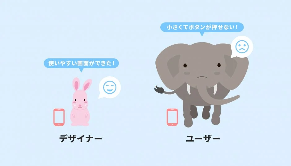 例えば象が使うスマホアプリをウサギが作成するとします(非現実的ですが笑)。
