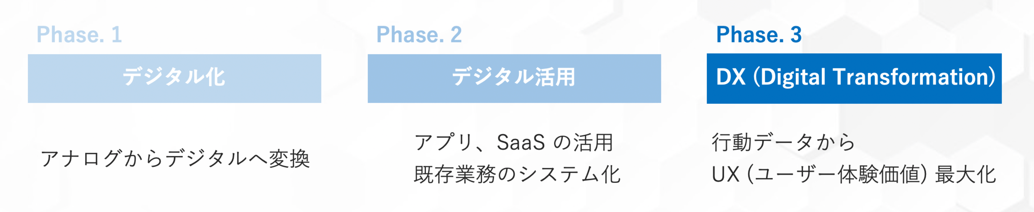 Phase.3 こそが、みなさんがぼんやりと捉えている「DX」の正体かと思います。