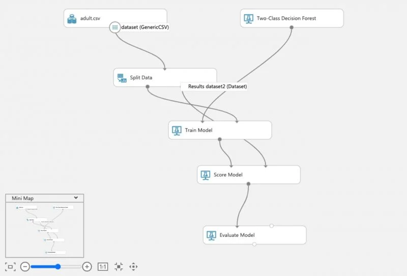 Azure Machine Learning を例にしますと、パズルを組み立てるようにして、AI モデルを組み立てることができます。また、自社のもつデータでも簡易な予測や分類であれば十分行うことができます。詳しくは、弊社のこちらの記事もご覧ください。